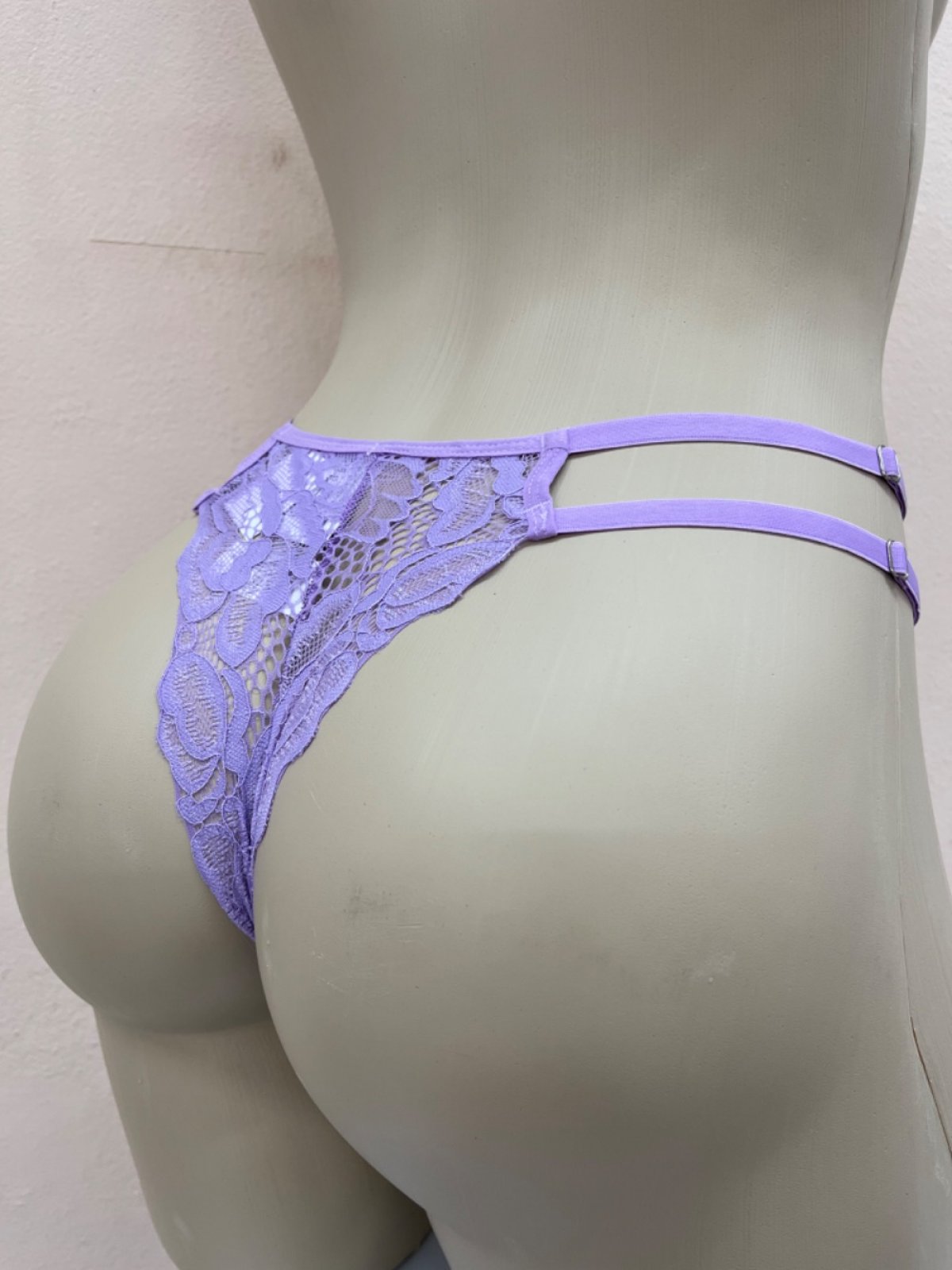 Calcinha com a parte de trás em renda, tecido muito macio, confortável e delicado. O modelo possui lateral modelo string com regulagem para que possa fazer os ajustes necessários ao corpo. Na parte de trás o modelo é cavado, que valoriza e acentua as curvas do bumbum.