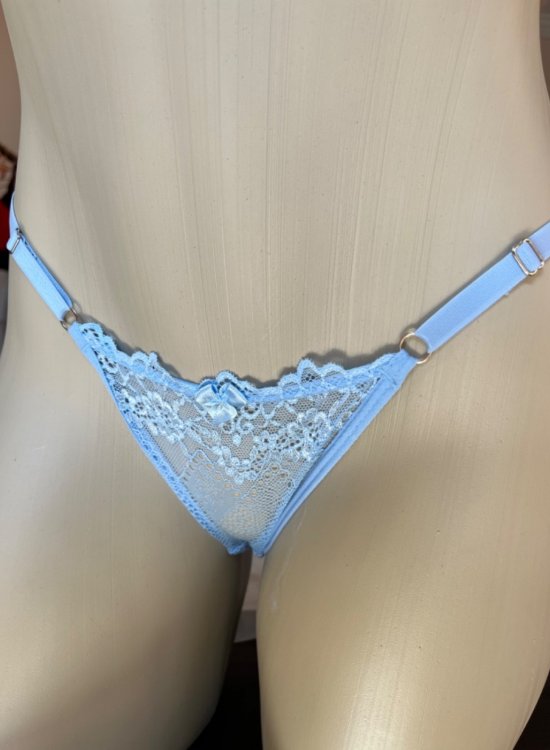 Calcinha String Renda e fio duplo com laterais reguláveis em elástico macio e detalhe de laço na parte frontal. Possui forro em algodão.