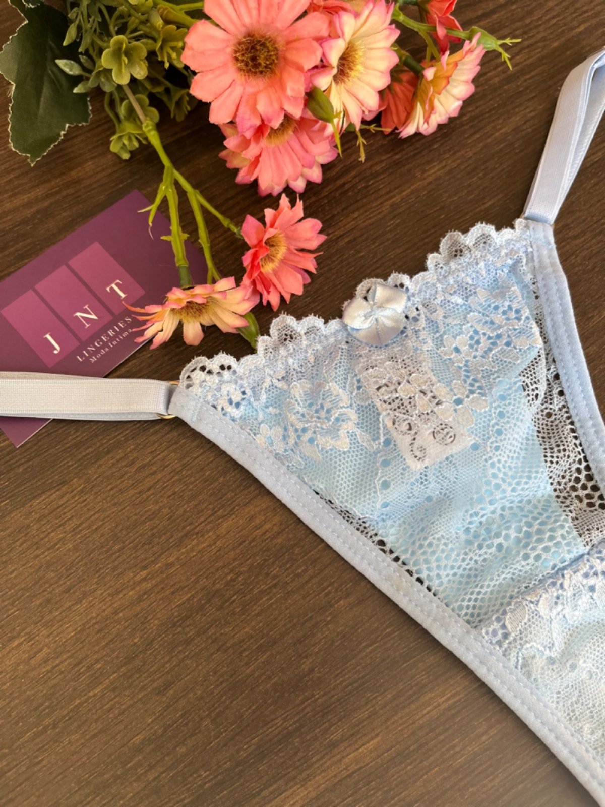 Calcinha String Renda e fio duplo com laterais reguláveis em elástico macio e detalhe de laço na parte frontal. Possui forro em algodão.