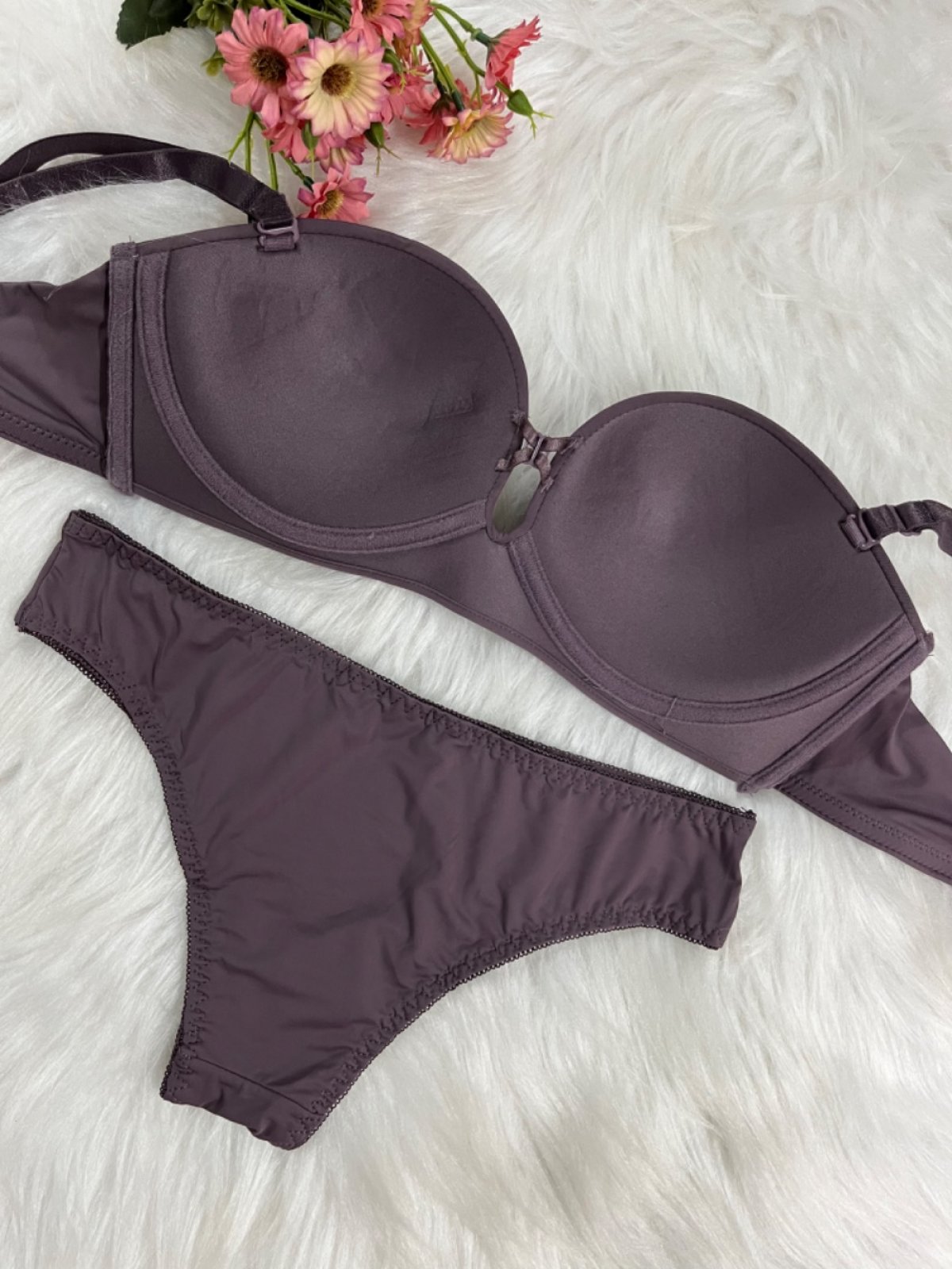 Conjunto com sutiã Bustiê tem alças removíveis, é uma ótima opção para quem busca uma peça versátil e confortável. Com bojo interno que proporciona um encaixe perfeito, ele oferece média cobertura e média sustentação, sendo ideal para seios pequenos e médios. Suas alças são removíveis, permitindo diferentes opções de uso, e as laterais são mais largas em tecido duplo, garantindo conforto e sustentação durante o uso.