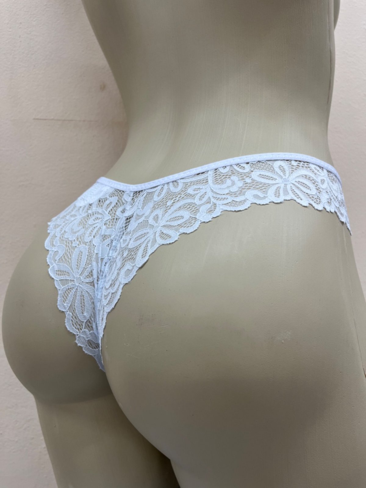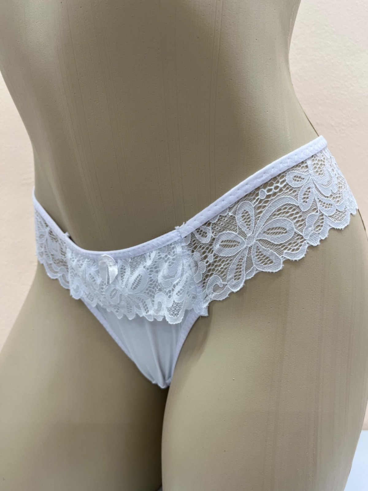 Calcinha Renda e fio com laterais em elástico macio e detalhe de laço na parte frontal. Possui forro em algodão.
