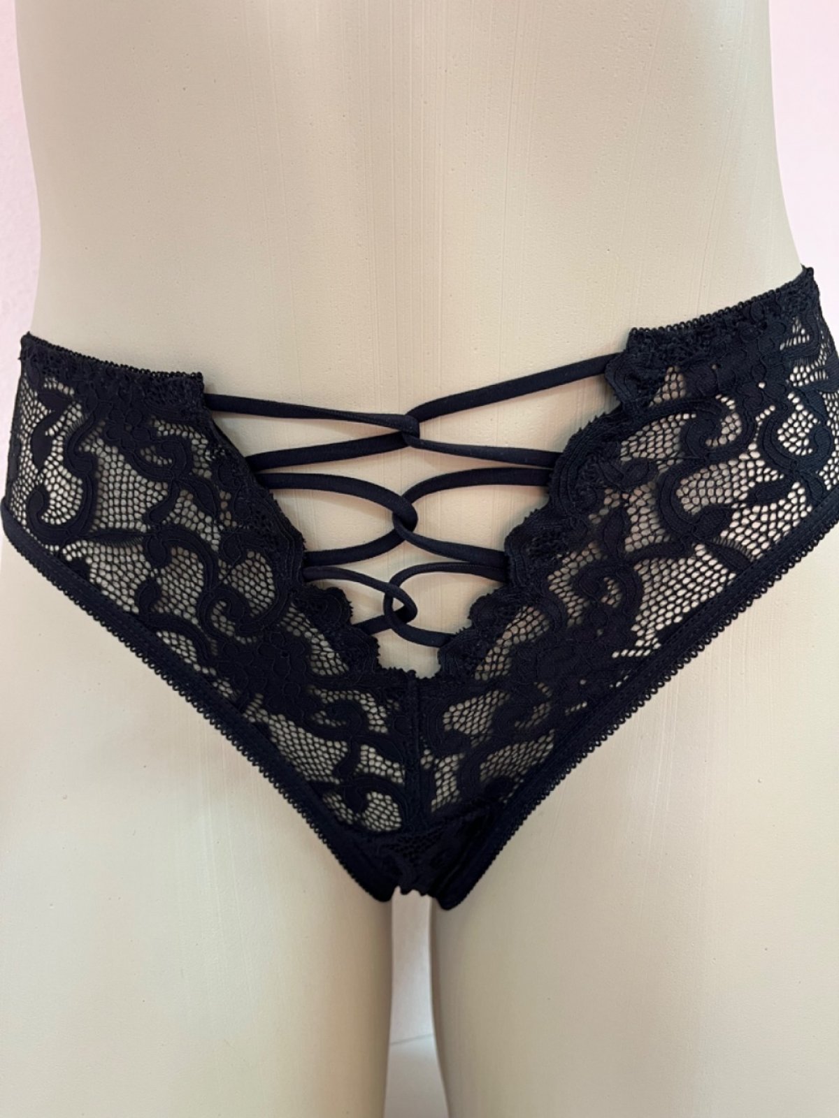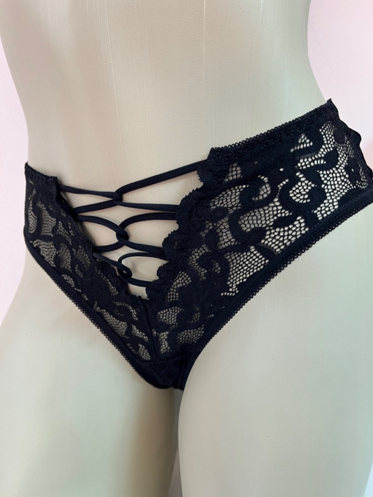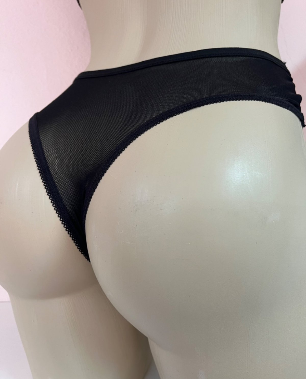 Calcinha modelo tanga, com um detalhe de trança na parte da frente, com forro de algodão