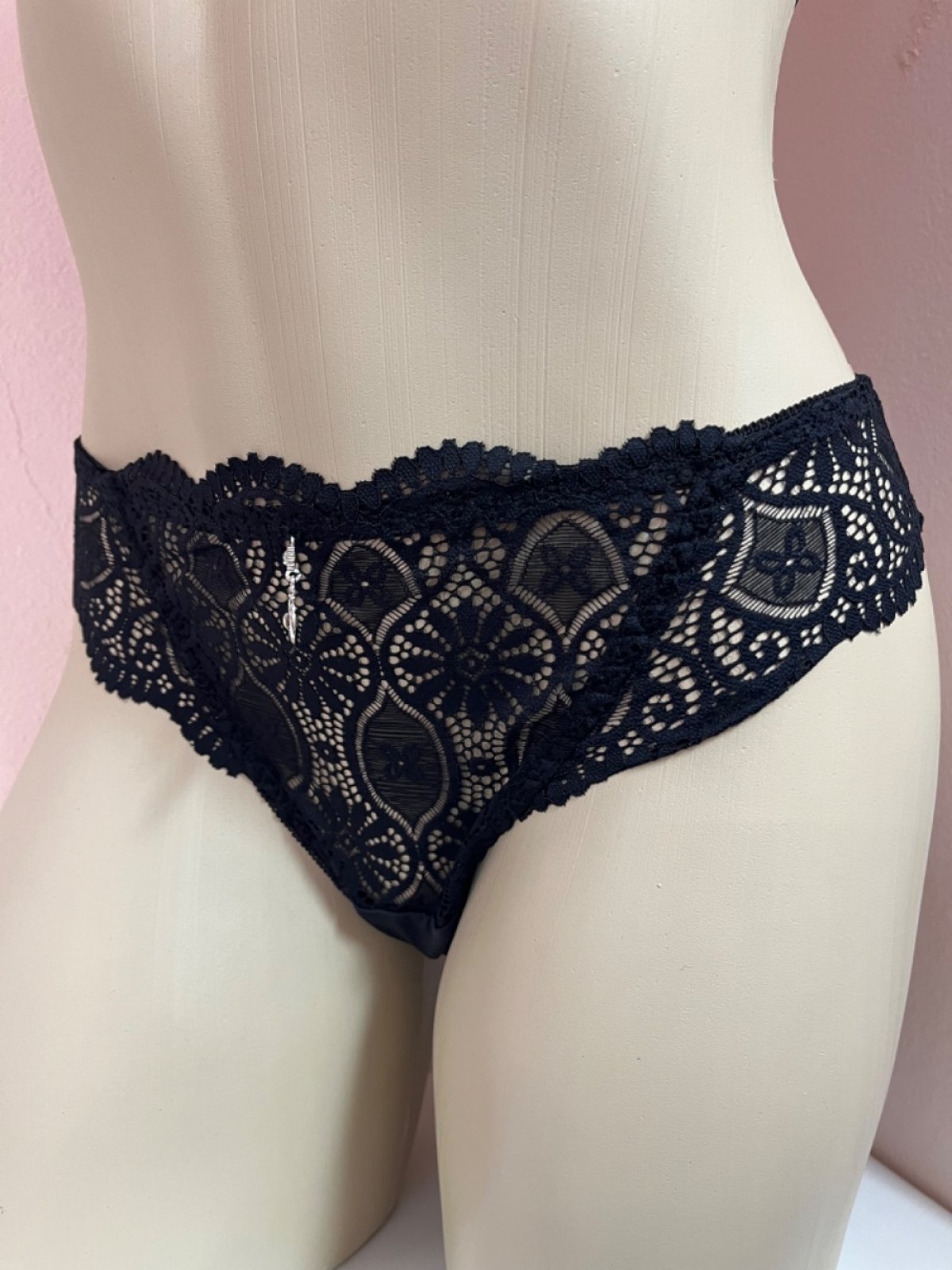 a calcinha modelo tanga, fio duplo na parte de trás  e forro de algodão