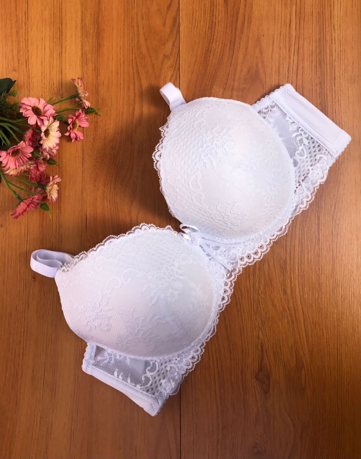 Sutiã com aro bojo casquinha, detalhes em renda com regulagem de altura o fecho é por colchetes atrás