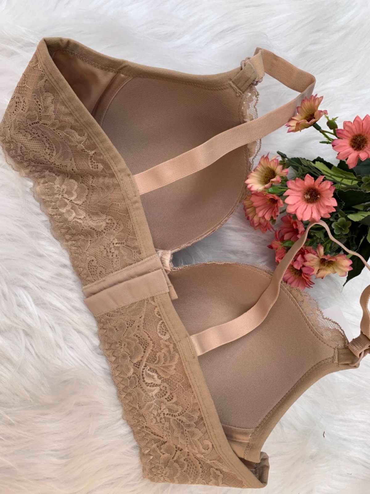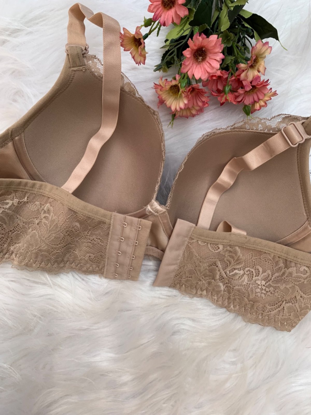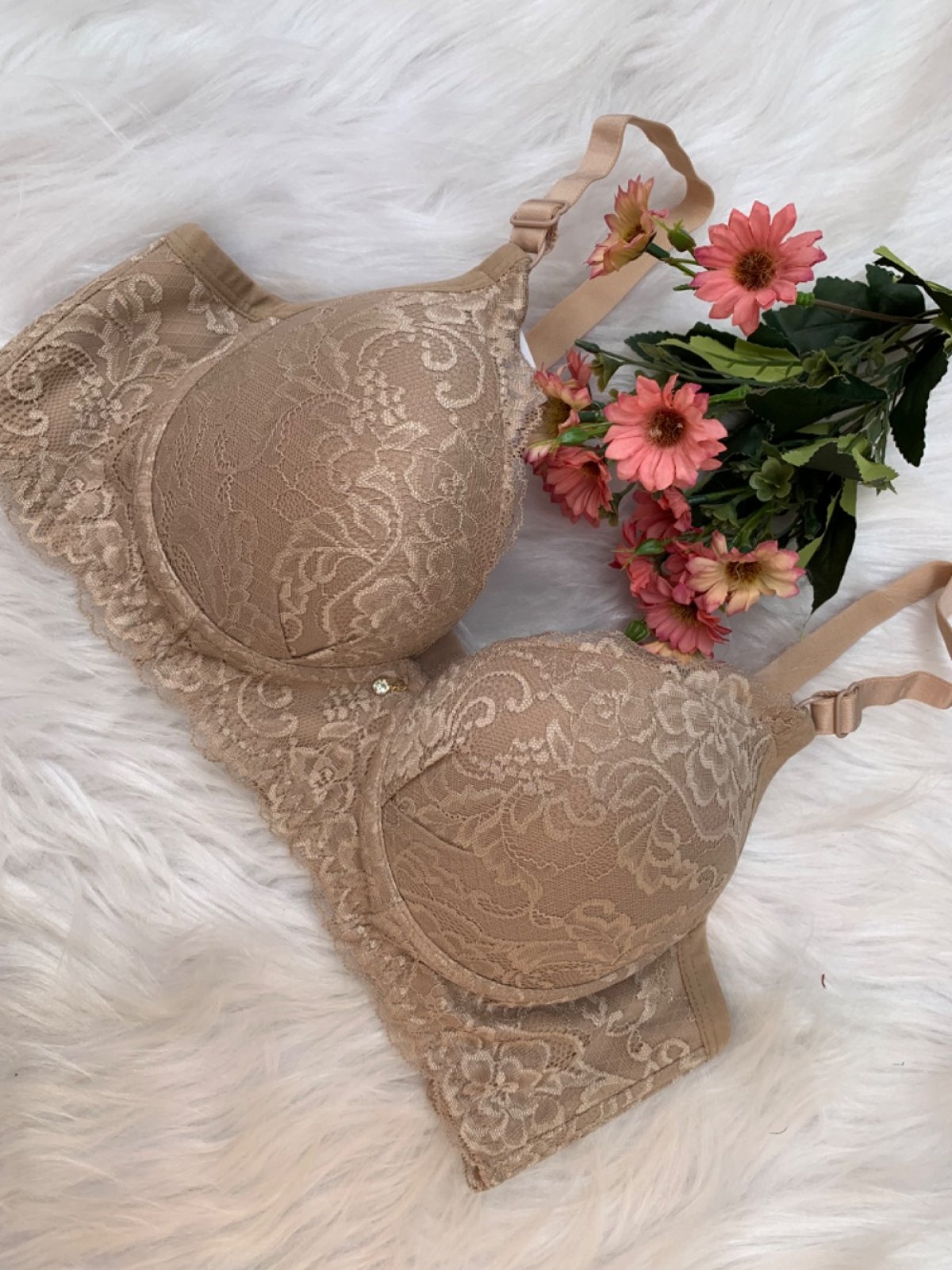 Sutiã com aro bojo casquinha, detalhes em renda com regulagem de altura o fecho é por colchetes atrás