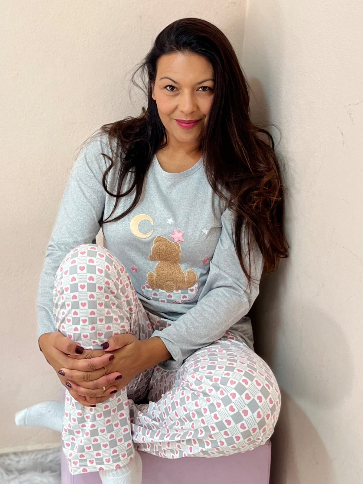 Pijama Feminino super macio, leve e confortavel. A blusa de manga longa tem uma linda estampa de urso