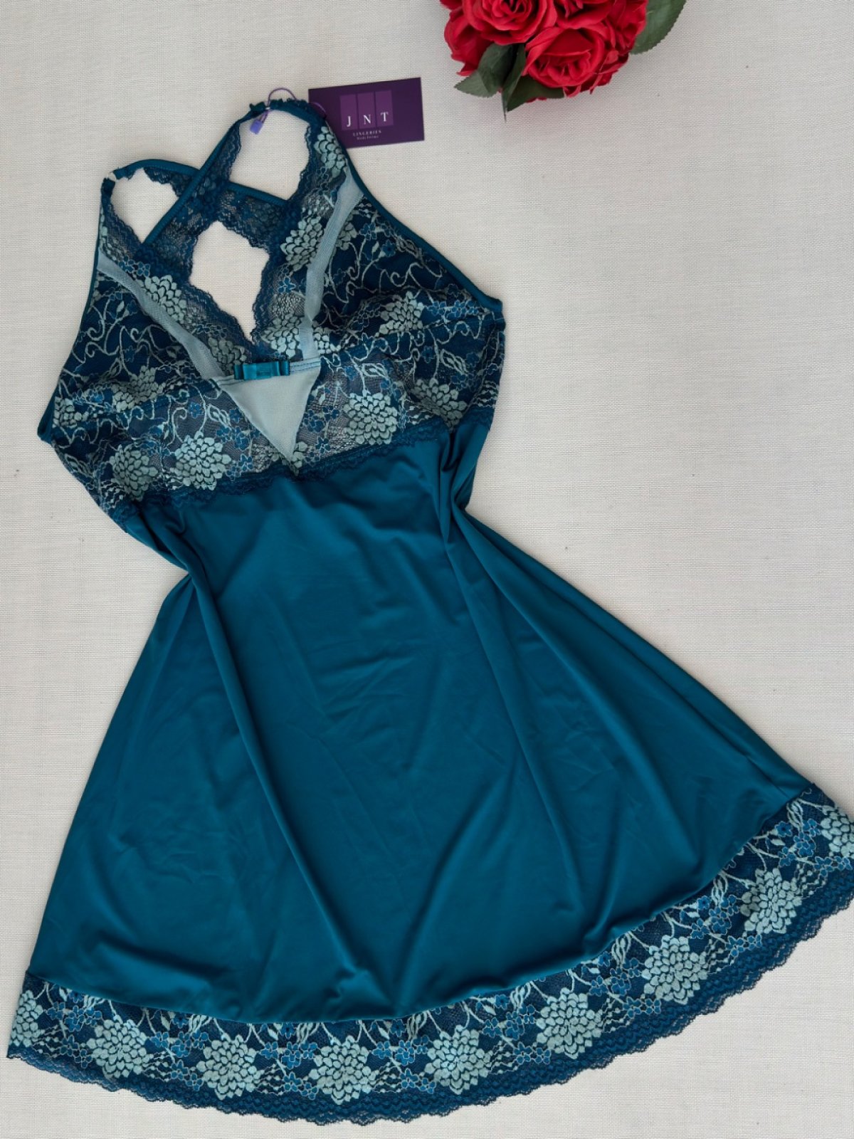 Camisola curta com detalhes e bordado em renda. Frente única as alças são cruzada nas costas .